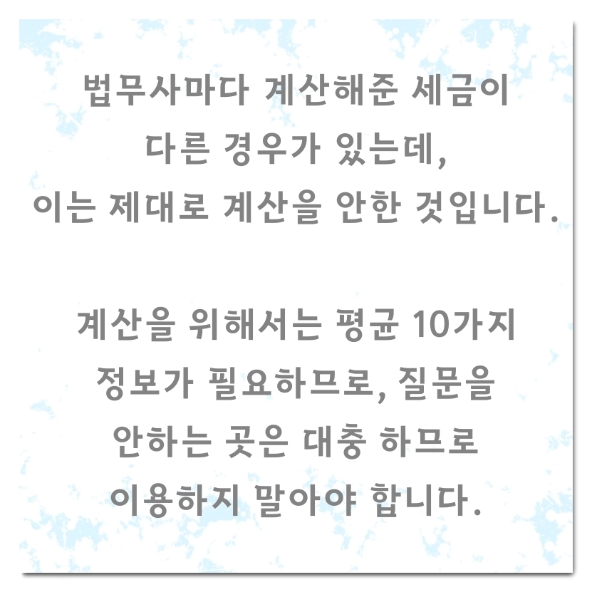 저희 법무사에서는 상담만 신청하셔도 세금 포함한 자세한 비용견적을 제공해드립니다.