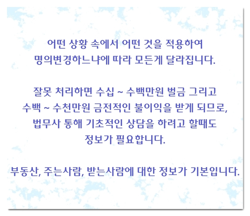 | 고양 아파트명의변경 법무사 찾을때 (18) | 2025.02.25 |