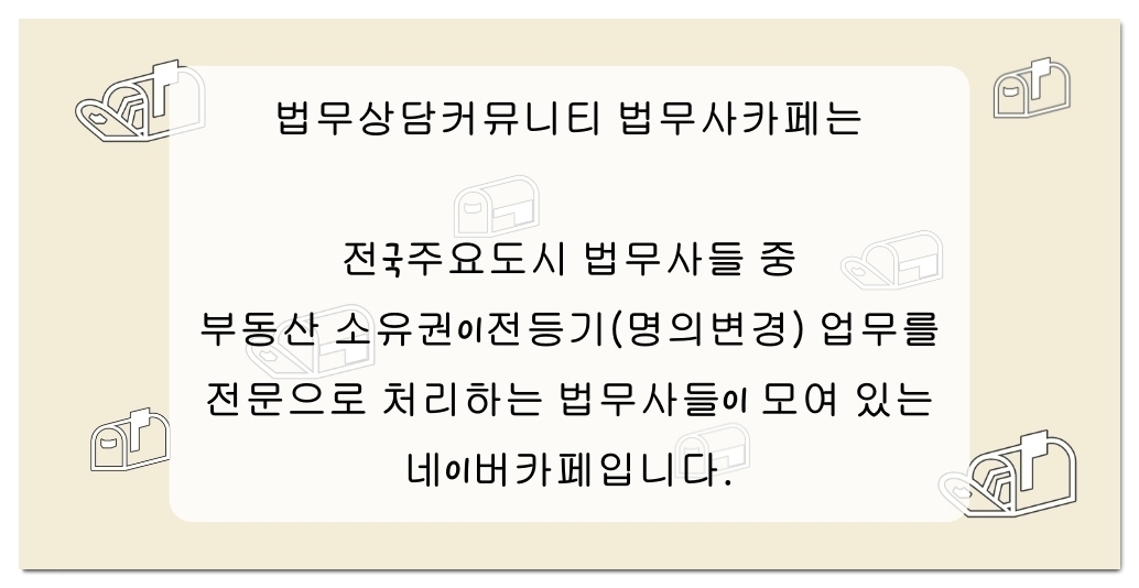 아파트상속 포함하여 상속등기(명의변경, 부동산등기, 소유권이전) 업무를 전문으로 처리하는 법무사들이 모여 있는 네이버카페 『 법무상담커뮤니티 법무사카페 』 입니다.