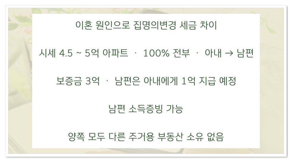 증여보다 이혼 원인으로 아파트명의변경하는게 좋은 이유는